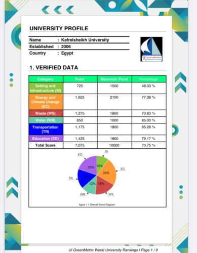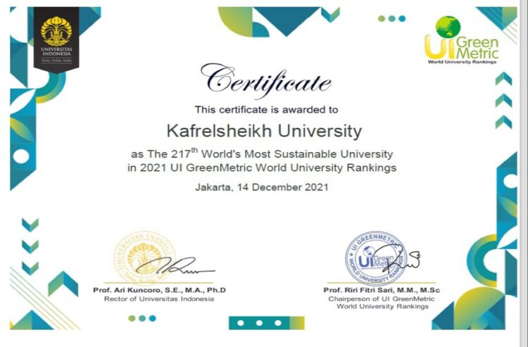 جامعة كفر الشيخ تحتل المركز الثاني محليا وأفريقيا في تصنيف جرين متريك العالمي للجامعات الخضراء صديقة البيئة