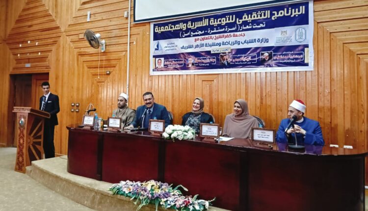 نظمت إدارة النشاط الاجتماعي بالإدارة العامة لرعاية الطلاب بجامعة كفر الشيخ “المعسكر المجتمعي” ضمن البرنامج التثقيفي للتوعية الأسرية والمجتمعية تحت شعار (أسرة مستقرة = مجتمع آمن) بالتعاون مع وزارة الشباب والرياضة “الادارة المركزية لتنمية الشباب” ومشيخة الأزهر الشريف، والذي عقد على مدار يومين بكلية التربية النوعية.