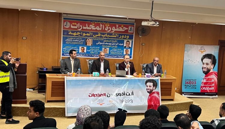 نظم قطاع خدمة المجتمع وتنمية البيئة بجامعة كفر الشيخ ندوة بعنوان «خطر المخدرات ودور الشباب في المواجهة» بكلية الحاسبات والمعلومات بالجامعة لتوعية الطلبة بأخطار وأضرار تعاطي المواد المؤثرة على الصحة النفسية، وتصحيح المفاهيم المغلوطة لدى الشباب حول المخدرات، بالتعاون والتنسيق مع صندوق مكافحة وعلاج الإدمان والتعاطي،