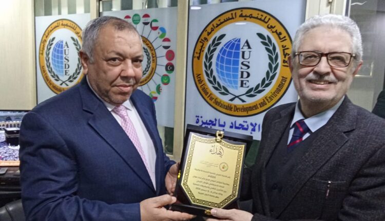 حيث قام بالإنابة عن الأستاذ الدكتور أبو القاسم محمد شلوف – رئيس جامعة ليبيا المفتوحة بتقديم شهادة شكر وتقدير للدكتور أشرف عبد العزيز، كما قدم إليه درع الإتحاد العربي للتعليم التقني بدولة ليبيا بالانابة عن الأستاذ الدكتور علي السائح – الأمين العام لاتحاد التعليم التقني، وذلك لجهوده المتميزة أثناء رئاسته للمؤتمر السنوي الدولي الرابع عشر للاتحاد العربي للتنمية المستدامة والبيئة المنعقد بمقر جامعة الدول العربية يومي ٤ – ٥ ديسمبر ٢٠٢٤، تحت رعاية