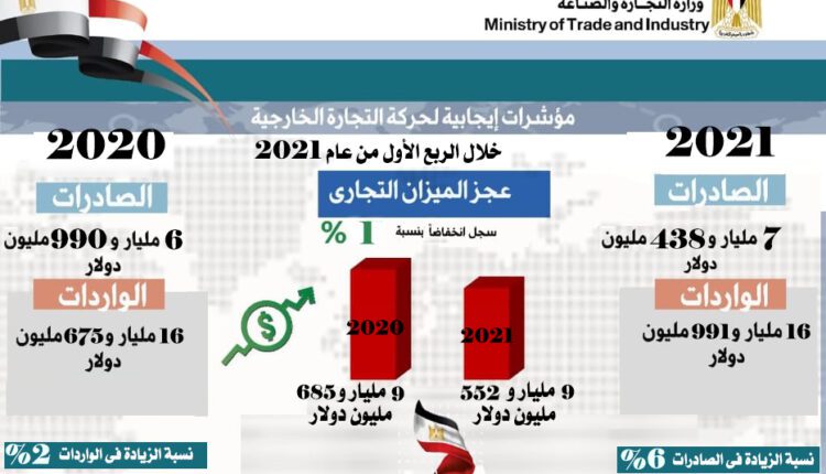 أعلنت نيفين جامع وزيرة التجارة والصناعة أن الصادرات المصرية غير البترولية حققت زيادة ملحوظة بنسبة 6% خلال الربع الأول من عام 2021 حيث بلغت 7 مليار و438 مليون دولار مقارنة بـنحو 6 مليار و990 مليون دولار خلال نفس الفترة من عام 2020، مشيرةً إلى أن هذه الزيادة الملموسة جاءت رغم الظروف الراهنة المرتبطة بأزمة فيروس كورونا التي يعاني منها العالم بأسره وذلك بفضل الجهود التي بذلتها الحكومة لمساندة القطاعات الإنتاجية والتصديرية خلال الأزمة، الأمر الذي ساهم في استمرار دوران عجلة الإنتاج والحفاظ على الأسواق التصديرية.