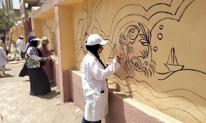 جدران مدارس الحامول تتحول إلي لوحات جمالية بلمسات طالبات النوعية