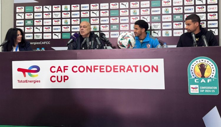 وأضاف المدير الفني في المؤتمر الصحفي قبل اللقاء:” مواجهة المصري قوية والزمالك قادر على تحقيق الفوز في لقاء الغد”.
