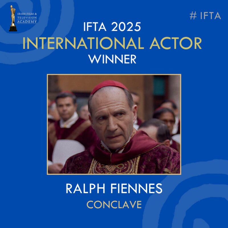 أعلنت الأكاديمية الأيرلندية للسينما والتليفزيون (IFTA) عن الفائزين بجوائز IFTA لعام 2025، تكريمًا للإنجازات الاستثنائية في السينما والدراما في حفل حضره عدد كبير من النجوم يوم الجمعة الماضي الموافق 14 فبراير 2025 في مركز المؤتمرات الملكي في العاصمة الأيرلندية دبلن.