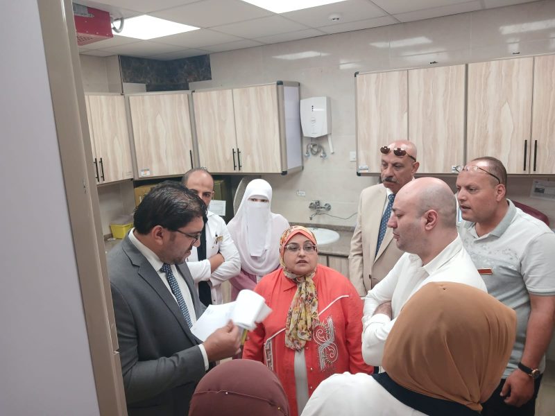 كما تفقد عيادات كفر الزيات وكان فى استقبالة الدكتور على منصور مدير عيادات كفر الزيات وتفقد الدكتور كريم بركات غرف الكشف والصيدلية وعيادة الأسنان وغرفة التعقيم وعيادة الإحالة للتأكد من سير العمل بانتظام وعدم وجود أى أعطال بالأجهزة وتوافر جميع المستلزمات والأدوية واتباع سياسات مكافحة العدوى والتأكيد على اتباع الإجراءات الاحترازية والوقائية بعيادات الإحالة، والتأكيد على توفير التهوية الجيدة بالعيادة والتباعد وعدم وجود تكدس، مشددا على النظافة بصفة مستمرة، واستخدام أدوات التطهير لكافة الأسطح حفاظا على سلامة المرضى وتوفير مستلزمات مكافحة العدوى لجميع العاملين.