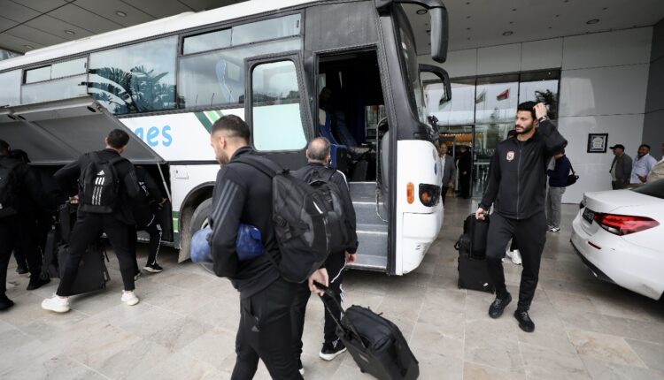 حافلة الأهلي تغادر فندق الإقامة في طريقها إلى استاد حمادي العقربي