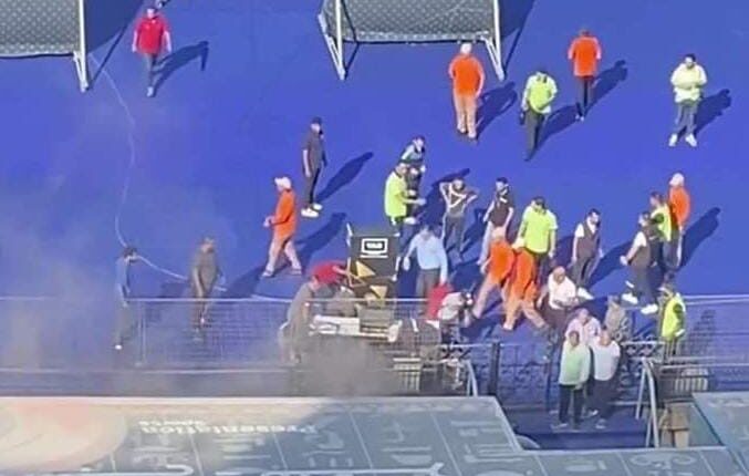 فوجئ العاملين في ستاد القاهره منذ قليل بإندلاع حريق بجوار شاشه الفار قبل لقاء القمة بين الأهلي والزمالك مساء اليوم وهرولت الي مكان الحريق قوات الدفاع المدني وتبين ان الحريق في كابل تقنيه الفار وتم السيطره علي الحريق ويتم الان التعامل وتغير الكابل المحترق بأخر فبل بدء اللقاء.
