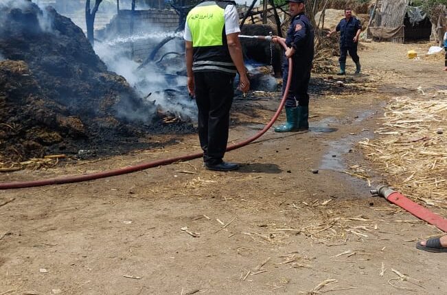 تمكنت قوات الحماية المدنية بمركز بسيون برئاسة الرائد اسامة البرماوى من اخماد حريق شب فى جرنين تبن القمح حيث تلقى العميد عصام الشنراقي مأمور مركز بسيون اخطارا بنشوب حريق فى اجران تبن القمح بحقلين