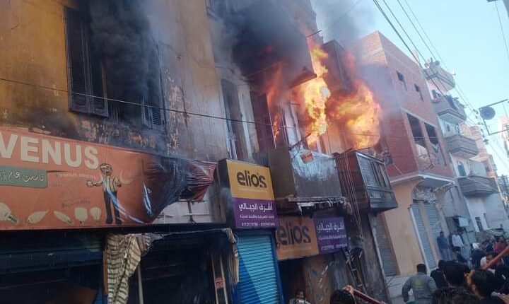 حريق يلتهم محتويات منزل من ٣ طوابق بمنطقة القيسارية بطهطا
