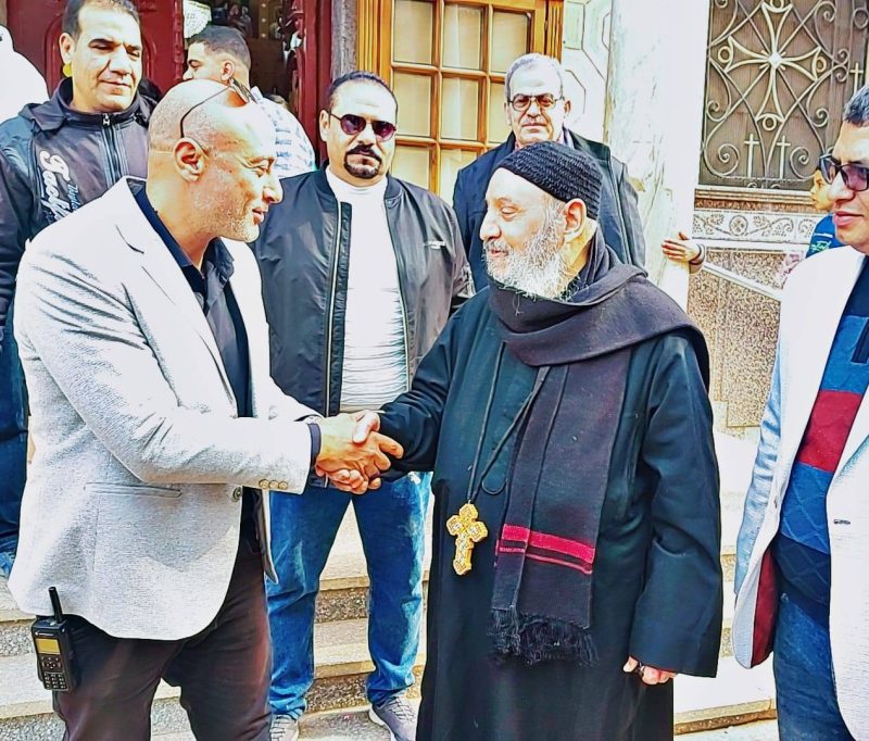 حسين رئيس مركز ومدينة بسيون يقوم بزيارة كنيسة مارمينا لتقديم التهنئة ويوزع هدايا الرئيس في عيد الميلاد المجيد