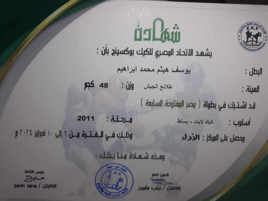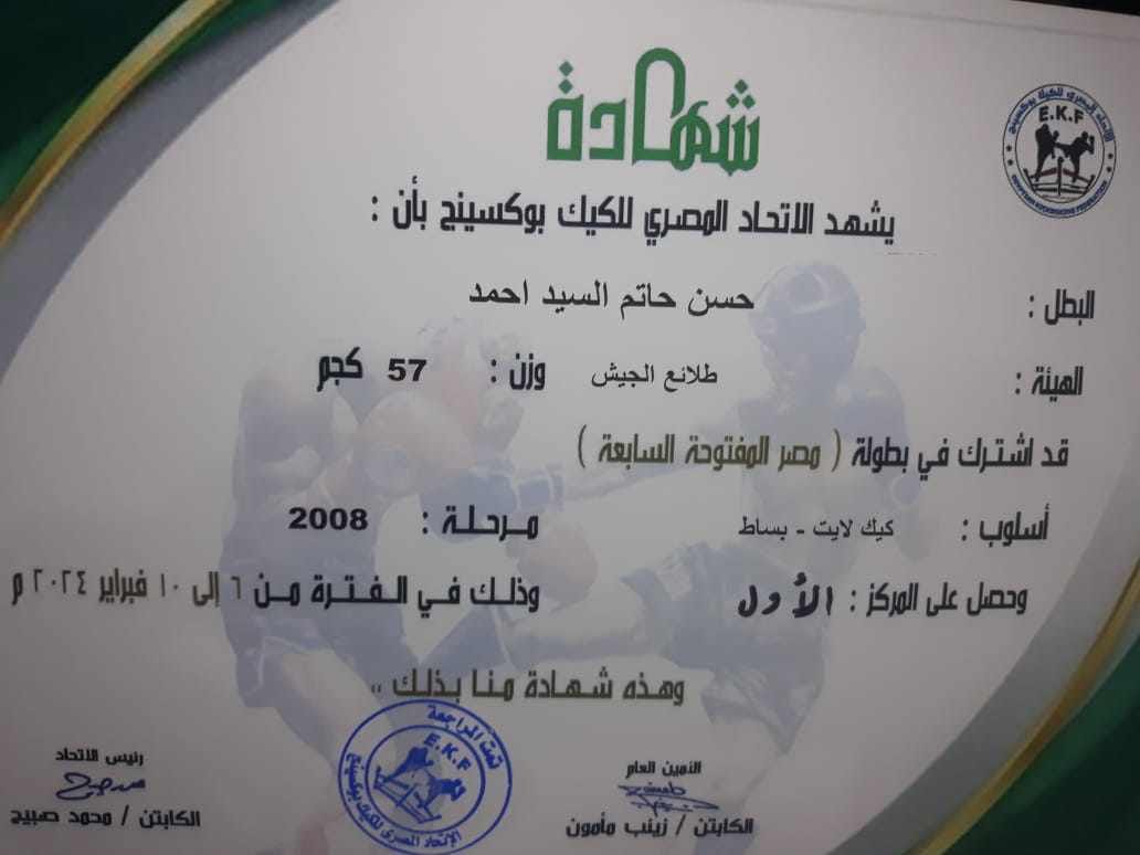 حيث حصل اللاعب يوسقف هيثم على المركز الاول فى وزن 48 كم كما حصل كلا من اللاعب حسن حتم السيد احمد على المركز الاول فى وزن 57 وحصل اللاعب انس على حسين على المركز الاول فى وزن 25
