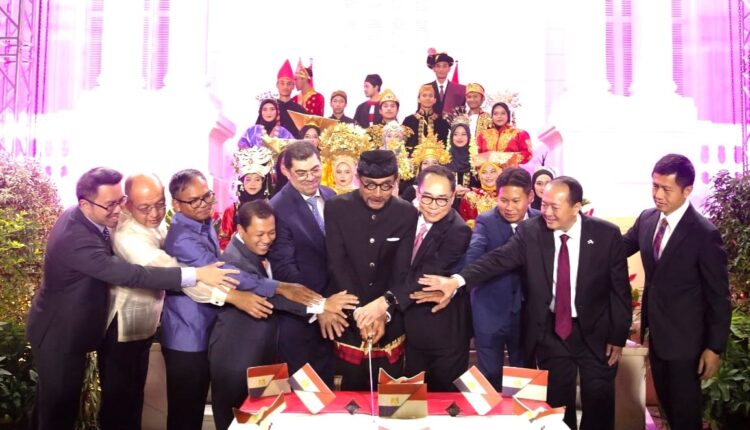 على هامش الحدث وشهده سفراء دول الآسيان في القاهرة، قام السفير لطفي رؤوف بموكب تقطيع الكعكة الحمراء والبيضاء ، امتنانا لله سبحانه وتعالى بمناسبة مرور 78 عاما على استقلال إندونيسيا ورئاسة إندونيسيا لآسيان في عام 2023. بالطبع رئاسة إندونيسيا لرابطة أمم جنوب شرق آسيا في عام 2023 تعززالتعاون بين أعضاء الرابطة وشركاء الحوار. وقال السفير لطفي رؤوف في كلمته: “الشراكة والتعاون بين الدول هو مفتاح النجاح في مواجهة التحديات العالمية التي نواجهها اليوم نتيجة لوباء كوفيد-19 وأزمات الغذاء والطاقة”.