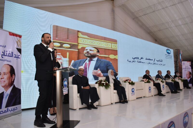 شارك أعضاء هيئة مكتب الحملة الرسمية للمرشح الرئاسي عبد الفتاح السيسي بالغربية بحضور النائب محمد عريبى والنائب الدكتور طلعت عبد القوى والنائب أحمد الجحش واللواء أحمد عبد الوهاب وأيه ياسر فى مؤتمر جماهيرى حاشد لحزب مستقبل وطن تخطى 10 آلاف مشارك من جميع أنحاء المحافظة وبحضور زعيم الأغلبية النائب الدكتور عبد الهادى القصبى والانبا بولا مطران طنطا وتوابعها والنائب محمد مرعى رئيس لجنة المشروعات الصغيرة بمجلس النواب ومجدة الخواجة رئيس الاتحاد الاقليمى والشيخ عبد اللطيف طلحة وكيل وزارة المنطقة الأزهرية وبحضور لفيف من وكلاء الوزارات .