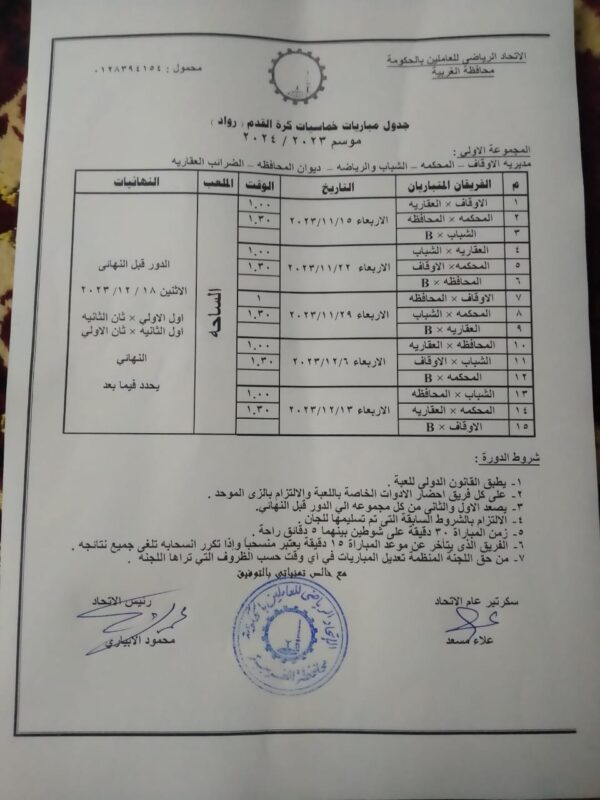 خلال انطلاق دوري المصالح الحكومية بالغربية.. اللجنة النقابية للعاملين بالمحكمة تعلن مبايعتها للرئيس السيسي