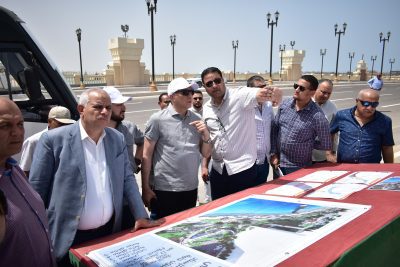 ثم قام المهندس أمين غنيم، ومرافقوه، بجولة تفقدية بمواقع مشروعات مدينة العلمين الجديدة، بدأت بالمدينة التراثية مروراً بكباري البوغاز، والأبراج الشاطئية، والكمبوند السكنى مزارين، والحي اللاتيني، وكافة مشاريع المدينة.