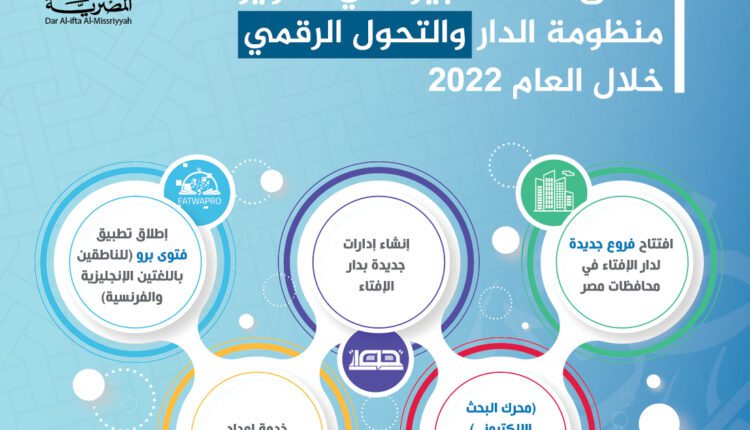 شهدت دارُ الإفتاء خلال العام 2022 نقلة كبيرة في التحول الرقمي، خاصة منذ انتشار جائحة كورونا، فلجأت إلى التوسُّع في استخدام الوسائل التكنولوجية الحديثة في تقديم خدماتها للناس في مصر ومختلف دول العالم.