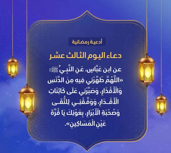 دعاء اليوم الثالث عشر من رمضان 2025 ردده من الفجر حتى المغرب و أعلم أن ثوابه عظيم للفوز بأعلى درجات الجنة، ولا يوجد خير من شهر رمضان المبارك للدعاء والتضرع لله،