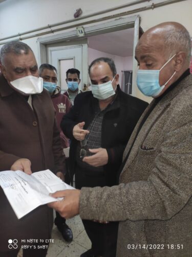 جاء ذلك خلال تفقده لقسم الأمراض الباطنة والاستقبال والطوارئ وقسم الكلي الصناعي والاقسام الداخلية ، وذلك للإطمئنان على سير العمل والاطمئنان على الخدمات المقدمة للمرضى ومدى إلتزام وتواجد الفرق الطبية وقام بمناظرة السجلات الطبية للمرضى، والتأكد من تدوين كافة البيانات والإجراءات الطبية والعلاجية للحالات بها وأشاد بالجهد المبذول في تقديم الخدمة الجيدة وتأكد من توافر المستلزمات والأدوية، موجهًا تعليماته بالالتزام بجميع القواعد المنظمة للعمل.