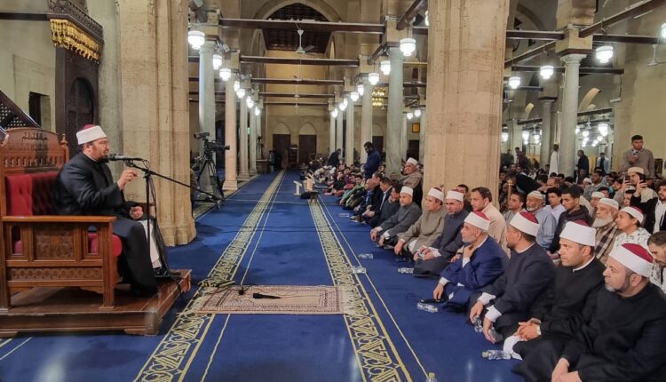 وأكد فضيلته أن القرآن كلام الله ومأدبة الله كما قال ﷺ: (إنَّ هذا القرآنَ مأدبةُ اللهِ فاقبَلوا مأدُبتَه ما استطعتم)، والمأدبة يجتمع حولها الناس، فينبغي أن يجتمع المسلمون في الدنيا حول القرآن الكريم، لأنه الصاحب الوفي الذي ينفع صاحبه يوم القيامة، ولا يترك صاحبه هَملًا؛ وإنما يرفعه على رؤوس الناس في الدنيا بالإضافة إلى المنقبة التي ينالها في الآخرة، فما أجمل أن نلتف حول القرآن ونستمسك به ونتلوه حق تلاوته ونتدبره حق تدبره ونعمل به ونطبقه كما أمرنا الحق سبحانه وتعالى، سائلا المولى عز وجل أن يجعلنا من أهل القرآن وأن يديم فينا بركة القرآن يحيينا على القرآن ويحشرنا تحت لواء القرآن.