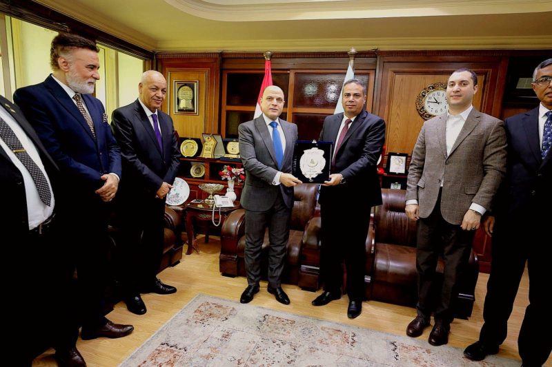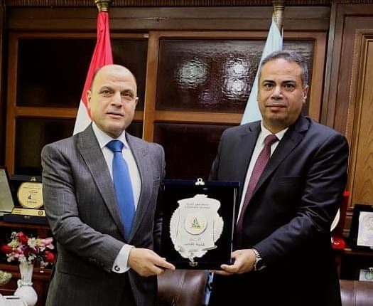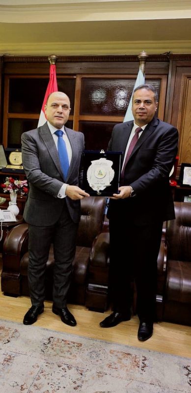 د وليد البحيري عميد كلية الآداب، جامعة كفرالشيخ يهدى درع الكلية للواء دكتور علاء عبدالمعطي محافظ كفر الشيخ