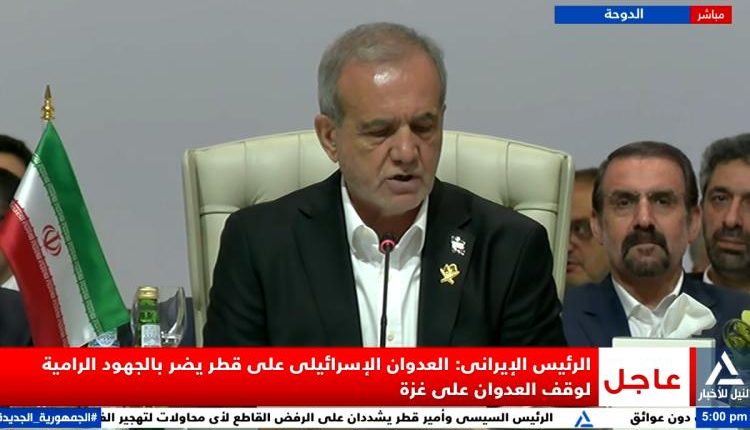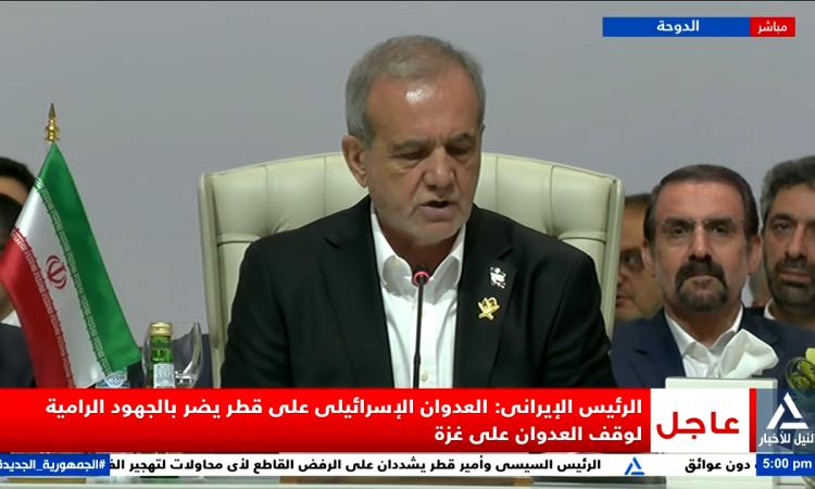 أكد الرئيس الإيراني مسعود بزشكيان ان العدوان الإسرائيلي على قطر يضر بالجهود الرامية لوقف العدوان على غزة