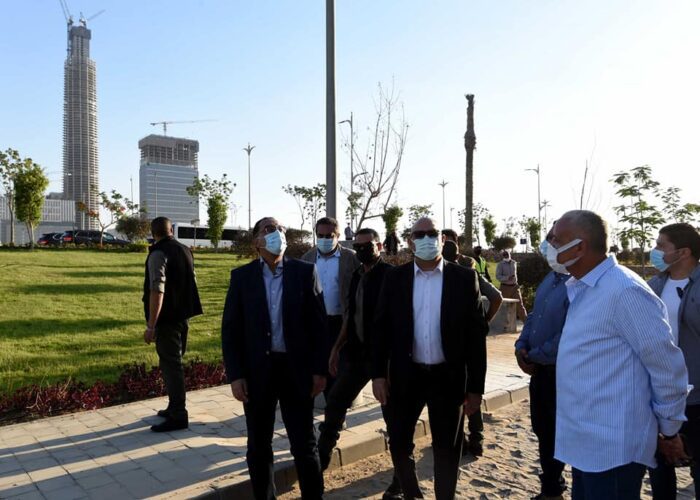 واستمع الدكتور مصطفى مدبولي إلى شرح حول الموقف التنفيذي للمشروع، الذي وصل إلى مراحل متقدمة، وذلك فيما يتعلق بشبكة الصرف، وشبكة تصريف المياه السطحية، وشبكات المياه والري والكهرباء، وأعمال النباتات، وأعمال الموقع العام، وكذا موقف إنشاء البوابات الرئيسية والثانوية، والمنشآت. كما تجول في أرجاء الحديقة المركزية التي تتميز الإنشاءات بها بطابع التدرج.