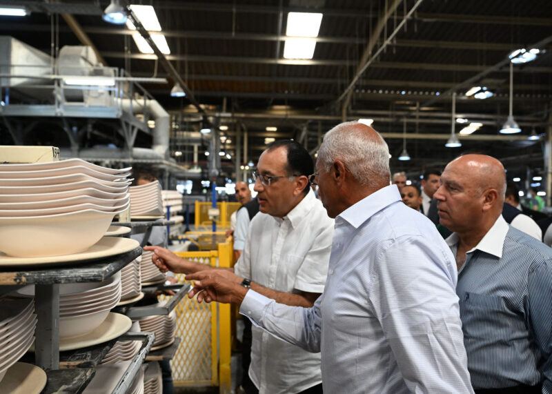 واستهل رئيس الوزراء جولته بالمنطقة الحرة الخاصة بمدينة الإسكندرية، بتفقد مصانع الشركة المصرية الألمانية لصناعة البورسلين ( فتحي محمود)، وكان في استقباله ورافقه المهندس/ سيد فتحي محمود، رئيس مجلس إدارة الشركة، الذي أوضح أن الشركة تعد أكبر مصنع لإنتاج أدوات المائدة من البورسلين بالشرق الأوسط، باستثمارات بلغت 100 مليون دولار، مضيفا أنه تم إنشاء الشركة بطاقة إنتاجية يومية 3 أطنان يوميا إلى أن وصلت إلى 80 طنا يوميا، بطاقة إجمالية 30000 طن سنويا، بما يعادل 85 مليون قطعة سنويا، مما جعله أكبر مصنع في أفريقيا وأوروبا ومنطقة الشرق الأوسط.