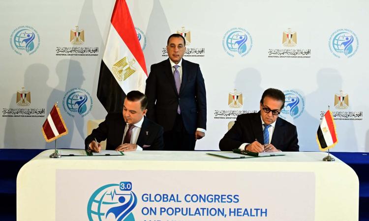 شهد الدكتور مصطفى مدبولي، رئيس مجلس الوزراء، اليوم؛ مراسم توقيع مذكرة تفاهم للتعاون في مختلف مجالات الرعاية الصحية بين وزارة الصحة والسكان بجمهورية مصر العربية، ووزارة الصحة بجمهورية لاتفيا، وذلك على هامش حضوره فعاليات النسخة الثالثة للمؤتمر العالمي للسكان والصحة والتنمية البشرية (PHDC’25)، الذي يعقد خلال الفترة من 12 إلى 15 نوفمبر الجاري، بالعاصمة الجديدة.