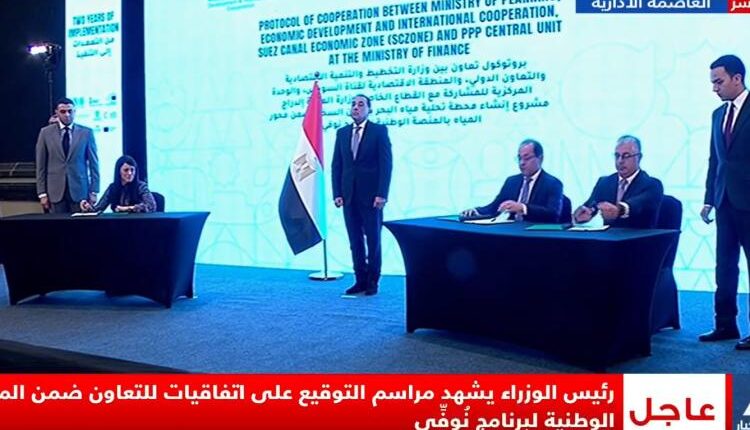 كما شهد رئيس الوزراء، توقيع بروتوكول تعاون بين وزارة التخطيط والتنمية الاقتصادية والتعاون الدولي، والوحدة المركزية للمشاركة مع القطاع الخاص بوزارة المالية، والهيئة العامة للمنطقة الاقتصادية لقناة السويس، لإدراج مشروع إنشاء محطة تحلية مياه البحر بالعين السخنة ضمن محور المياه ببرنامج “نوفي” ..