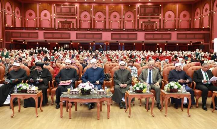 المؤتمر برعاية فضيلة الإمام الأكبر الدكتور أحمد الطيب شيخ الأزهر الشريف وفضيلة الدكتور محمد الضويني وكيل الأزهر وفضيلة الدكتور سلامة داوود رئيس جامعة الأزهر وبرئاسة الدكتورة شفيقة الشهاوي عميد الكلية رئيس المؤتمر.