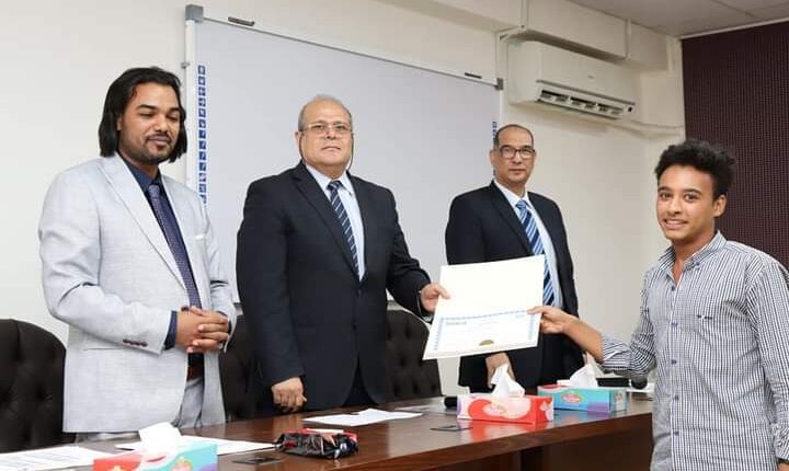 قام المسئولون عن الشركة بتقديم شهادات تقدير إلي طلاب الجامعة المتدربين لديهم لتميزهم في فترة التدريب،
