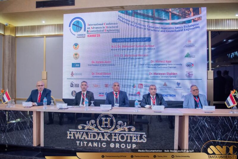 انطلقت مساء أمس فاعليات المؤتمر الدولي لتطورات الهندسة الانشائية والجيوتقنية في نسخته السادسة، بعنوان ” Integration of AI-Driven Vision and Innovative Smart Techniques: Pioneering the Future of Structural and Geotechnical Engineering” ” تكامل الرؤية القائمة على الذكاء الاصطناعي والأساليب الذكية الحديثة: استشراف مستقبل الهندسة الإنشائية والجيوتقنية، الذى ينظمه قسم الهندسة الانشائية بكلية الهندسة، تحت رعاية الدكتور محمد أيمن عاشور وزير التعليم العالي والبحث العلمي، وبحضور الدكتور محمد حسين رئيس جامعة طنطا والدكتور حاتم أمين نائب رئيس الجامعة لشئون الدارسات العليا والبحوث، والدكتور أحمد نصر عميد كلية الهندسة، والدكتور عماد عتمان نائب رئيس الجامعة السابق لشئون خدمة المجتمع وتنمية البيئة السابق ورئيس المؤتمر، ولفيف من أعضاء هيئة التدريس والباحثين من الجامعات المصرية والأجنبية المشاركين، والمنعقد على مدار 4 أيام بمدينة الغردقة.