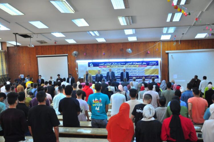 ووجه الدكتور عبد الرازق دسوقي، رئيس الجامعة كلمة للطلاب رحب فيها بهم وهنأ السيد الرئيس عبدالفتاح السيسي رئيس الجمهورية والقوات المسلحة الباسلة والطلاب وأعضاء هيئة التدريس بذكرى انتصار حرب أكتوبر المجيدة وبدء العام الدراسي الجديد موجها التحية لأرواح الشهداء متمنيا لمصر الأمن والأمان والتقدم والازدهار وللطلاب التوفيق والنجاح.