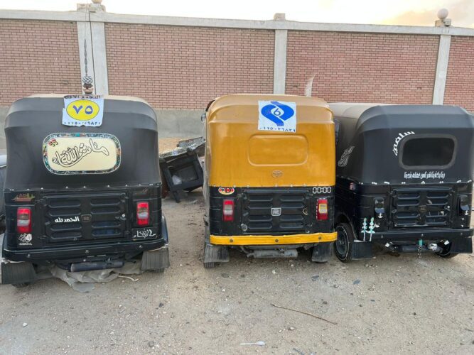 جدير بالذكر أن المهندس عبدالرءوف الغيطي، قد أصدر قراراً باعتماد اللائحة الخاصة بتطبيق قرار منع سير مركبات ” التوك توك ” بالمدينة، حيث نص القرار على أنه يحظر حظراً باتاً تسيير ” التوك توك ” في جميع تجمعات وشوارع مدينة القاهرة الجديدة، وأن يتم التحفظ على أي مركبة ” توك توك ” يتم ضبطها داخل المدينة، وتغريم شخص مالكها أو سائقها مبلغ ألفى جنيه ، في المرة الأولى، أو تغريم شخص مالكها أو سائقها مبلغ 3 آلاف جنيه في المرة الثانية، أو المصادرة في المرة الثالثة، وأنه على نواب رئيس الجهاز ورؤساء الأحياء كلُ في اختصاصه بمعاونة شرطة التعمير وقسم الشرطة المختص وإدارة الأمن، تنفيذ القرار.
