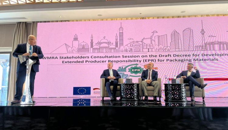 نيابة عن الدكتورة منال عوض وزيرة التنمية المحلية والقائم بأعمال وزير البيئة، أفتتح الاستاذ ياسر عبدالله الرئيس التنفيذى لجهاز تنظيم إدارة المخلفات التابع لوزارة البيئة الجلسة التشاورية حول مسودة قرار تطبيق نظام المسئولية الممتدة للمُنتِج (EPR) لمواد التعبئة والتغليف، بحضور لفيف من ممثلي شركاء التنمية والقطاع الخاص، والسيد أندرياس روب رئيس مجموعة الأعمال والتحول الأخضر الوكالة الألمانية للتعاون الدولي (GIZ)، والدكتور حازم الظنان مدير البرنامج الوطني لادارة المخلفات الصلبة
