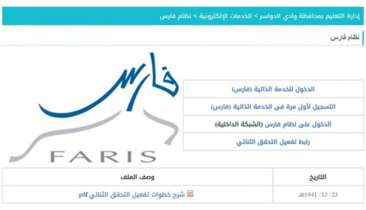 لتسجيل الدخول فى نظام فارس اضغط هنا
