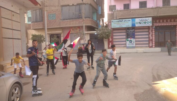 نظّم اطفال فريق البتناج ( عجلات التزلج) بمدينة طهطا شمال محافظة سوهاج اليوم وقفه احتجاجية تضامنا مع اطفال مدينة غزة بفلسطين وذلك فى الشوارع الرئيسية بمدينة طهطا