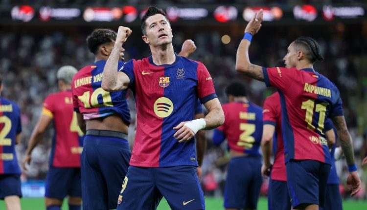 توج فريق برشلونة باللقب ال15 فى تاريخه، عقب الفوز على نظيره ريال مدريد،فى المواجهة التى جمعت بينهما مساء اليوم الأحد، على غرار منافسات كأس السوبر الإسبانى.