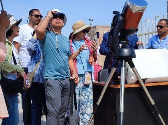 زائري معابد الكرنك يشهدون ظاهرة الكسوف الجزئي للشمس