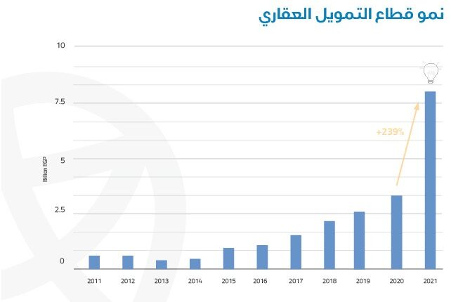 كما حقق التمويل العقاري نشاطًا ملحوظًا خلال عام 2021، حيث بلغ حجم التمويل الممنوح من قبل شركات التمويل العقـــاري ما يزيد على 8 مليار جنيه في عام 2021 مقارنة بحوالي 3.4 مليار جنيه في عام 2020، بارتفاع بلغ 138% وذلك طبقا لإحصائيات الهيئة العامة للرقابة المالية.