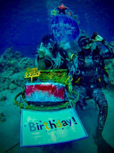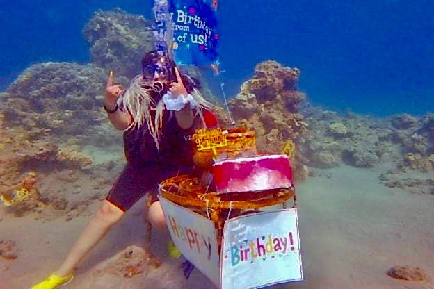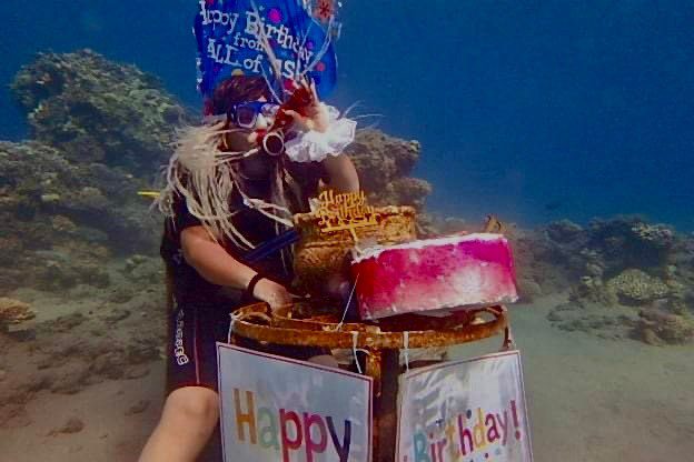 وعبرت «بيلا» عن سعادتها، حيث تفاجأت بأن منظم الرحلات البحرية أعد لها «تورتة»، وشارك عدد من السائحين الأجانب بالاحتفال بعيد ميلادها بالغطس تحت الماء، وحملوا لافتة تهنئة وقاموا بالرقص معها تحت الماء بملابس الغطس.