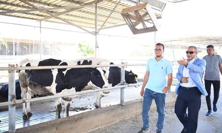 استهل السكرتير العام المساعد جولته بتفقد محطة الألبان رقم 1، والتى تضم 20 عنبر للأبقار الحلابة بإجمالى 426 رأس، تُنتج 5.5 طن ألبان يوميا ، بالإضافة إلى مجموعة من العنابر المخصصة للعجول الرضيعة، وخلال الجولة، تابع ” صلاح ” سير العمل بالمحلب الآلى، واستمع إلى شرح تفصيلى حول مراحل الحلب، بدءا من تجهيز الأبقار وحتى نقل الألبان إلى مصنع الألبان ، كما قام بالمرور على عنابر الأبقار الحلابة للإطلاع على أنظمة التغذية وكميات العلف المقدمة للأبقار ، كما اطلع على مخازن العلف المُلحقة بالمحطة للإطمئنان على مخزون العلف ، ووجه العاملين بالمحطة بضرورة الحفاظ على النظافة العامة، وتعقيم المحلب وأدوات الحلب .