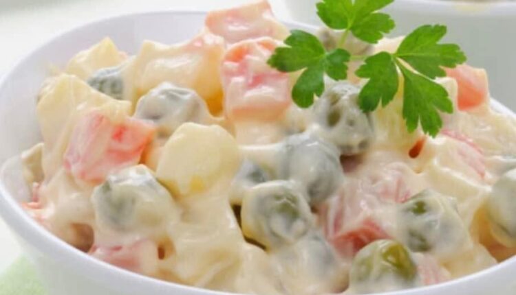يضاف كل مكونات الصوص وتقلب جيدا ثم يضاف الخضار المسلوق