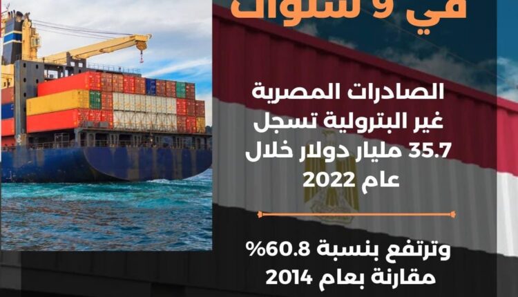 وقال الوزير إن قطاع التصدير حظي باهتمام كبير من الدولة المصرية وذلك لدوره المحورى فى منظومة التنمية الاقتصادية التى تتبناها الدولة وهو ما انعكس في زيادة حجم الصادرات عاماً بعد عام، إذ بلغ إجمالي الصادرات المصرية غير البترولية فى عام 2014 حوالي 22.2 مليار دولار ارتفعت مع نهاية عام 2022 الى 35.7 مليار دولار، محققة نسبة زيادة 60.8%.