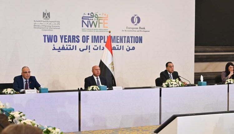 وفى كلمته .. توجه الدكتور سويلم بالتحية لدولة الدكتورمصطفى مدبولى رئيس مجلس الوزراء ، والفريق/ كامل الوزير نائب رئيس مجلس الوزراء للتنمية الصناعية وزير الصناعة والنقل ، والسيدة الدكتورة رانيا المشاط وزيرة التخطيط والتنمية الاقتصادية والتعاون الدولى ، و الدكتور محمود عصمت وزير الكهرباء والطاقة المتجددة ، وعلاء فاروق وزير الزراعة واستصلاح الأراضي، و مارك بومان نائب رئيس البنك الأوروبي لإعادة الإعمار والتنمية ، و مالين بلومبرج نائبة المدير العام ببنك التنمية الأفريقي و جويدو كلاري رئيس المركز الإقليمي لبنك الاستثمار الأوروبي ، ومارك ديفيس المدير الإقليمي لمنطقة جنوب وشرق المتوسط بالبنك الأوروبي لإعادة الإعمار والتنمية .