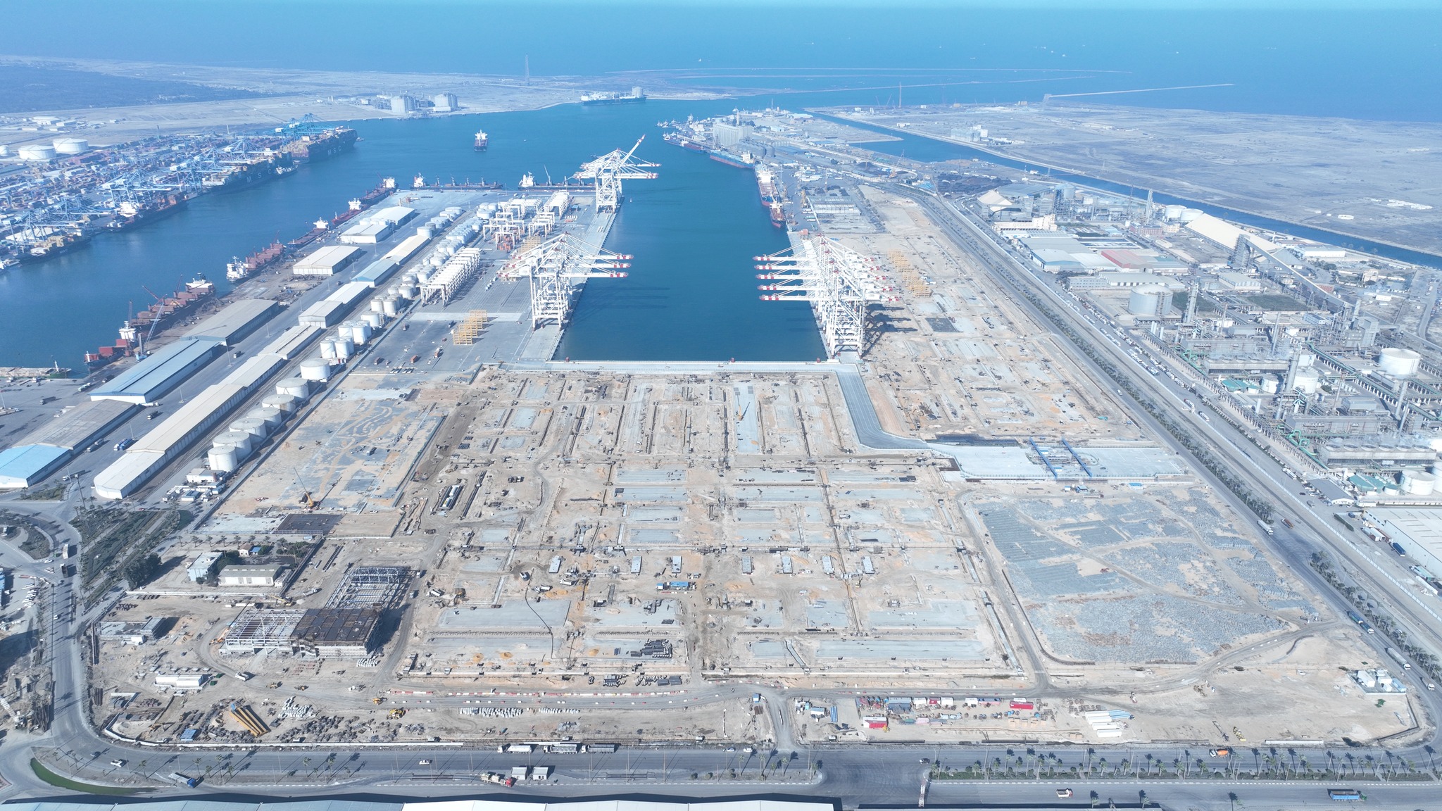 شاهد أحدث تصوير جوي لمحطة حاويات تحيا مصر 1.. قلعة لوجستية جديدة على البحر المتوسط