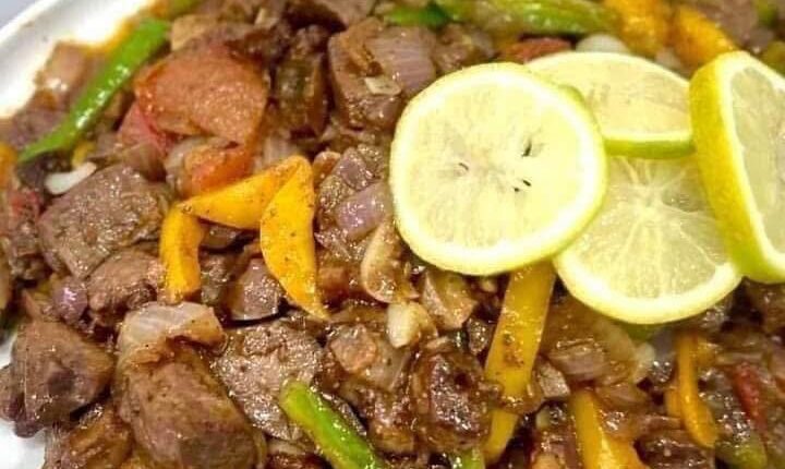 وفي آخر المكونات نضيف شرائح البصل ونقلب المكونات حتى تمتزج مع بعضها البعض جيداً .