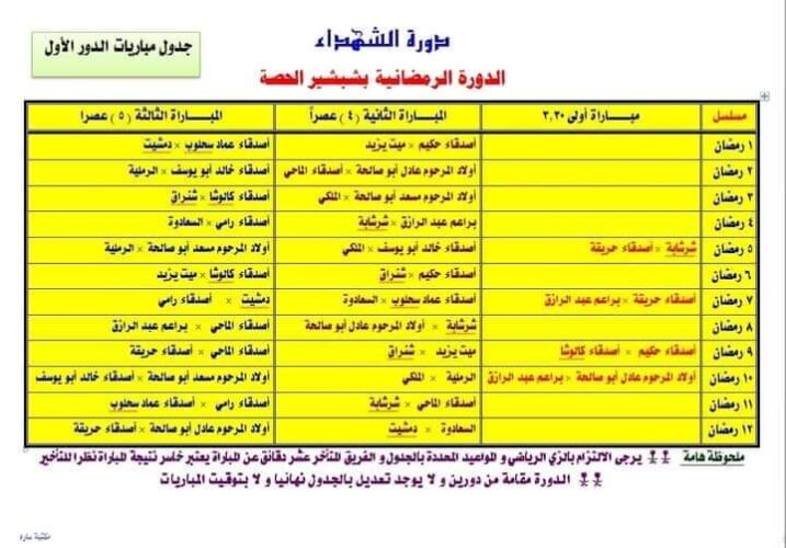 نظم شباب قرية شبشير الحصة دورة رمضانية في كرة القدم بمناسبة شهر رمضان المبارك، تحت شعار “دورة الشهداء”.