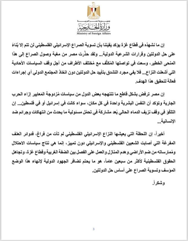 أكد سامح شكري وزير الخارجية أن فتح ممر آمن لسكان غزة عبر معبر رفح يعد تهجيرا للفلسطينيين، منددا بالاجراءات التي تجبر الفلسطينيين على التهجير والنزوح من أراضيهم.