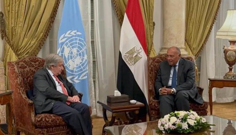 عقد وزير الخارجية سامح شكري، ظهر اليوم ،الأحد ، جلسة مباحثات مغلقة مع الأمين العام للأمم المتحدة أنطونيو جوتيريش، وذلك بمقر وزارة الخارجية بالعاصمة الإدارية الجديدة.